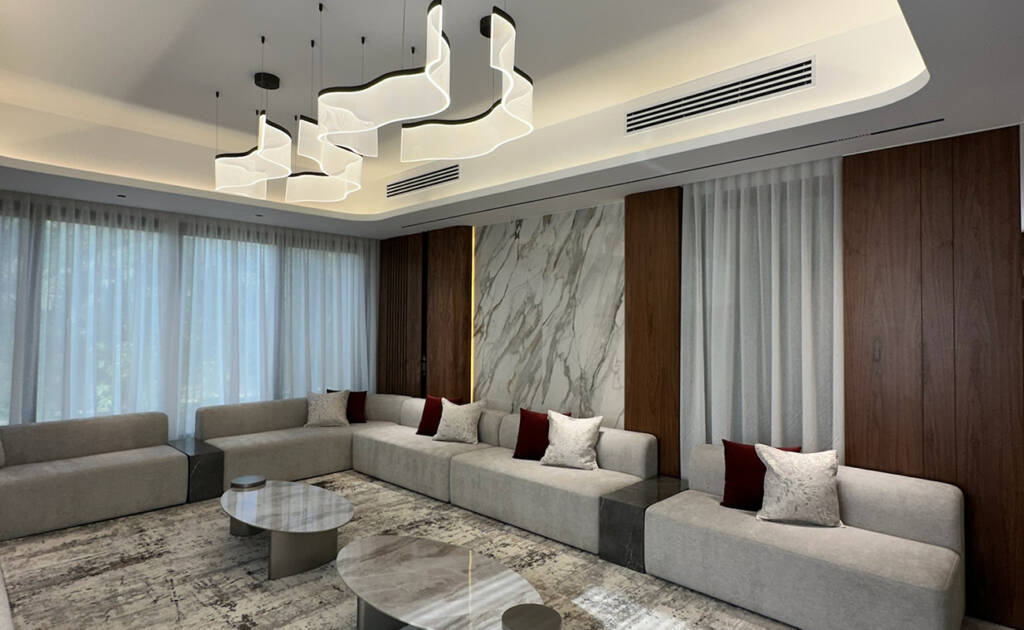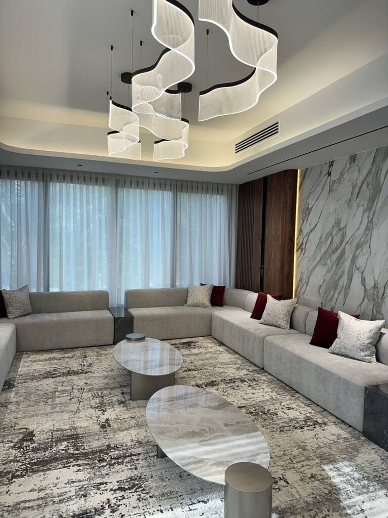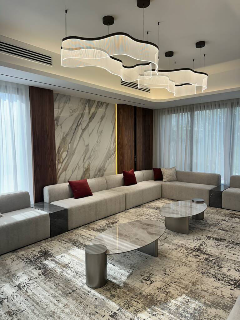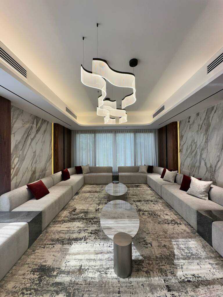 The Majlis in Al Barsha reflects a sophisticated blend of contemporary luxury and traditional design elements. The space is defined by luxurious marble flooring, elegant wood accents, and plush seating arrangements, creating a welcoming atmosphere for gatherings. The modern lighting design, combined with clean lines and high-end finishes, adds a touch of elegance, making the Majlis a perfect setting for both relaxation and socializing. Every detail has been thoughtfully crafted to create a refined and inviting space that exudes luxury.