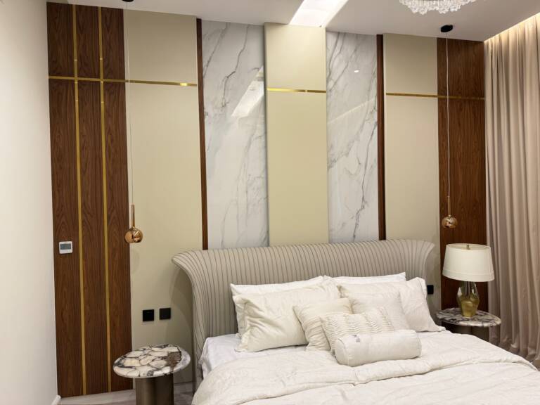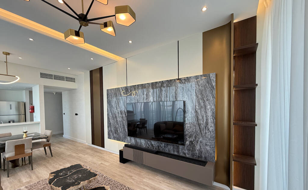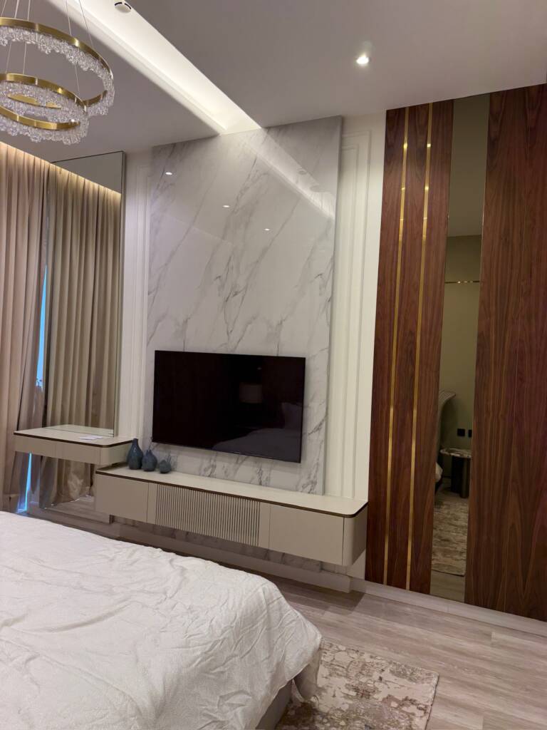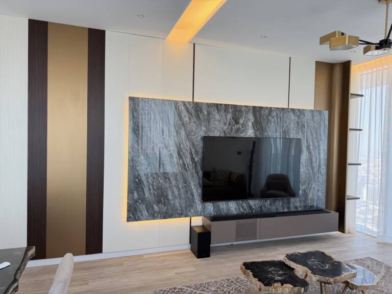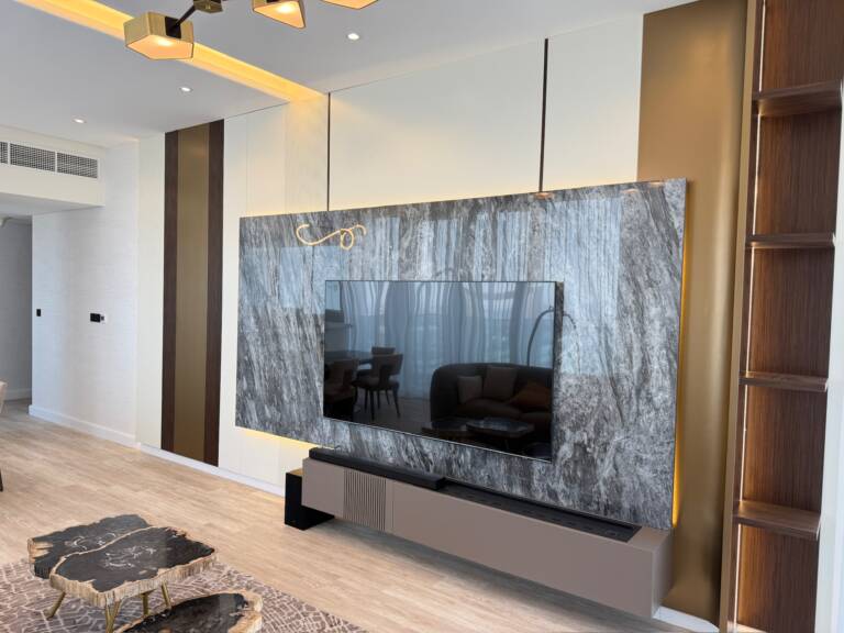 A refined blend of elegance and modern living. We incorporated sleek marble finishes with soft lighting to create a sophisticated, luxurious apartment.