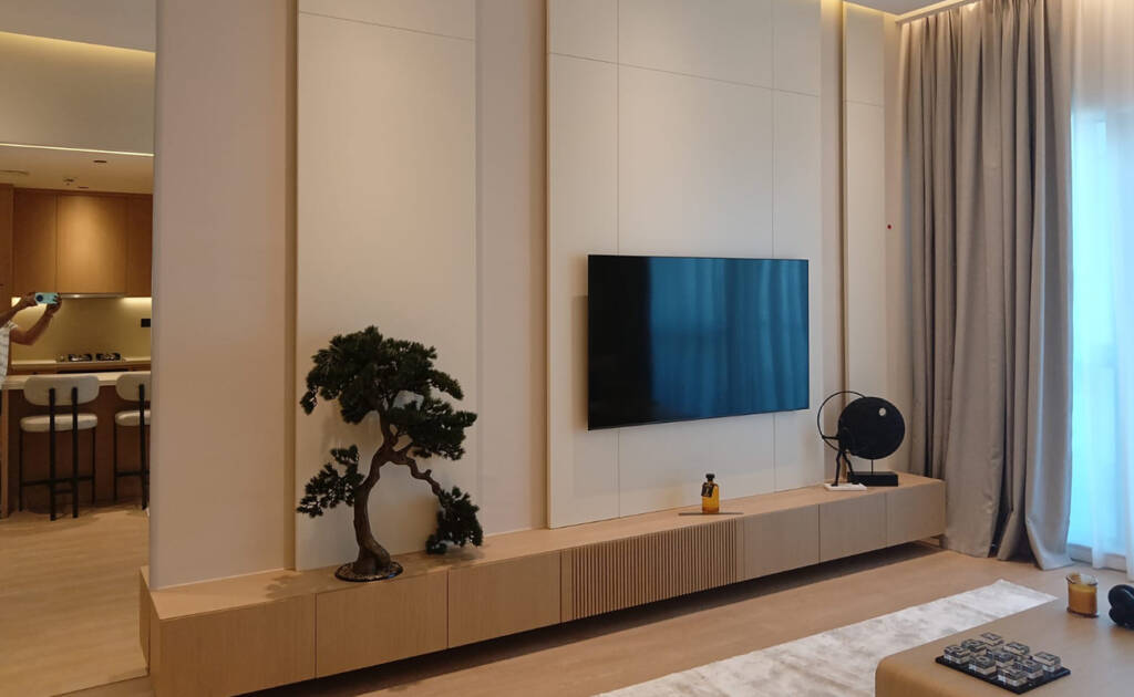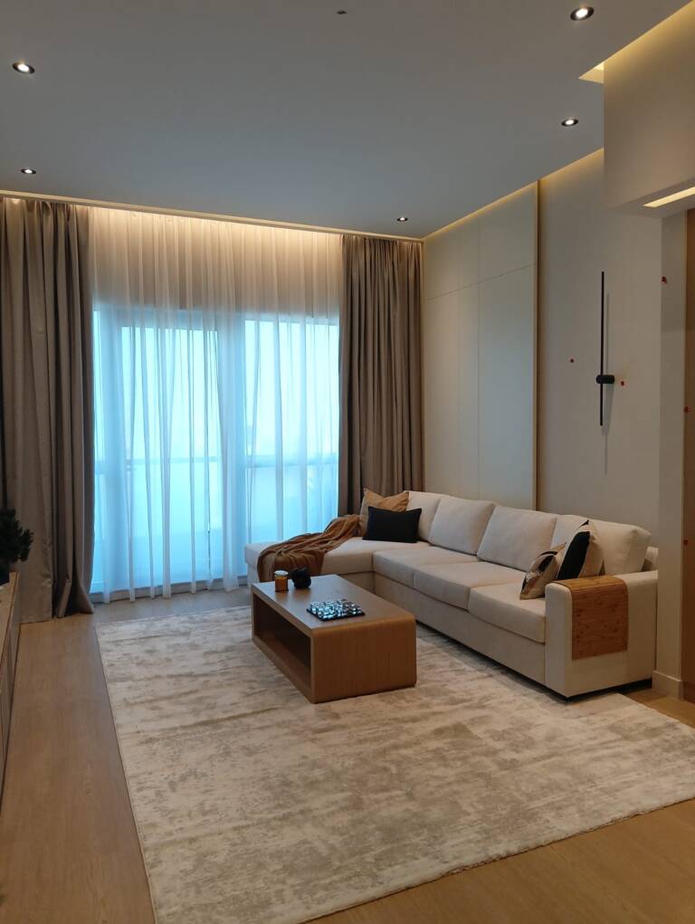 A sleek and contemporary design that enhances the living experience with elegant finishes and expansive windows, offering beautiful views of the Marina.